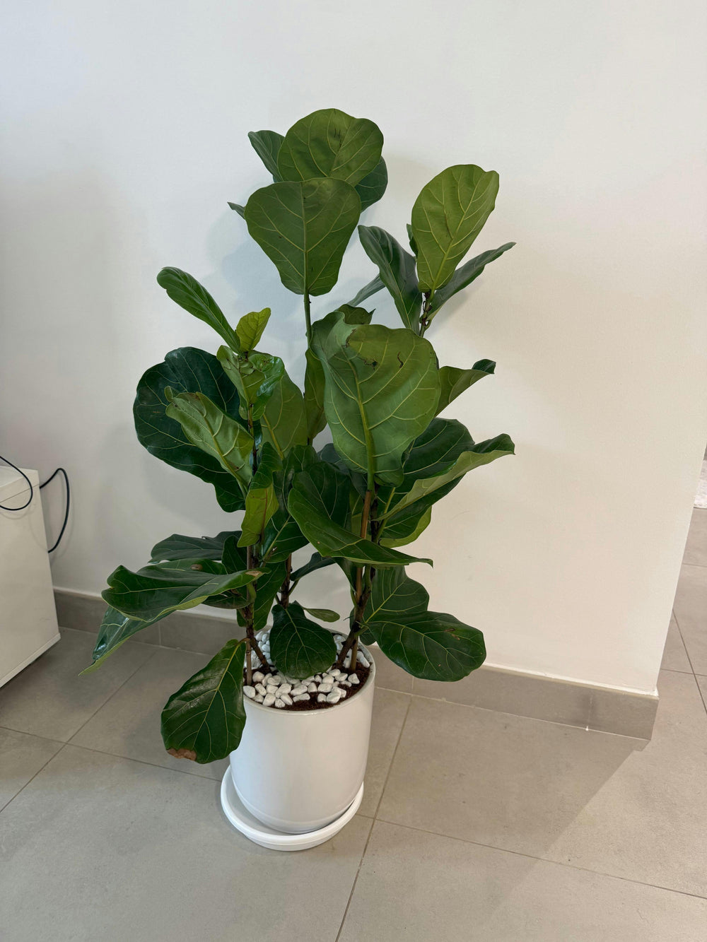 Fiddle Leaf Fig – 80–100 cm, in a white ceramic pot. Iconic large leaves for a bold, modern statement.