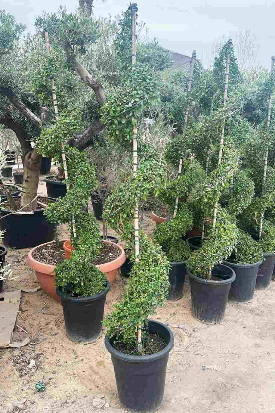 Ehretia Spiral Shaped is an elegant, low-maintenance ornamental plant perfect for gardens, patios, and indoor spaces. Its unique spiral trunk, lush foliage, and compact size make it an excellent choice for adding a sculptural, decorative element to any environment.