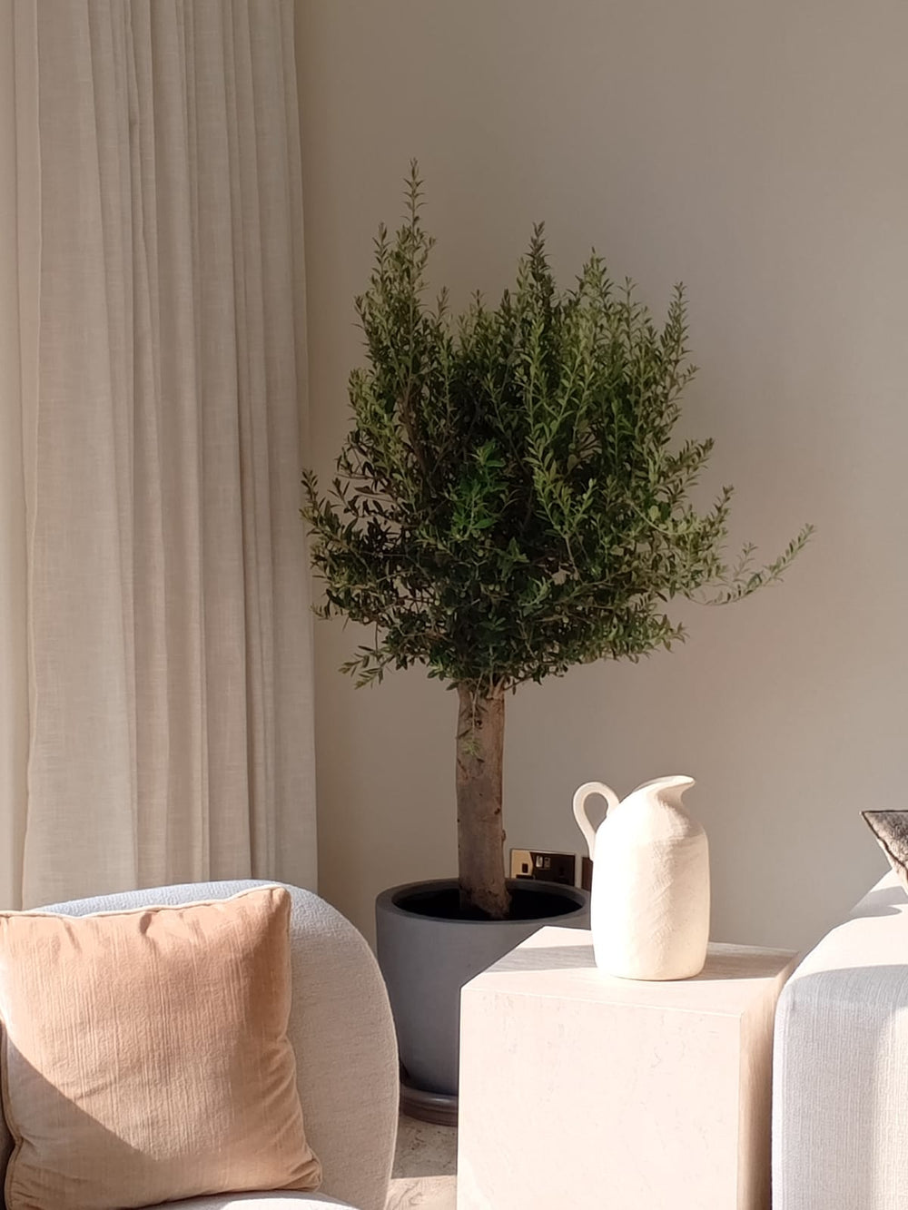 The Olive Tree brings timeless elegance to any interior or garden. Its silvery-green foliage adds a soft, sophisticated look, while the gnarled trunk — which develops character with age — gives a sense of history and charm. Perfect for modern, rustic, Mediterranean, or minimalist décor.