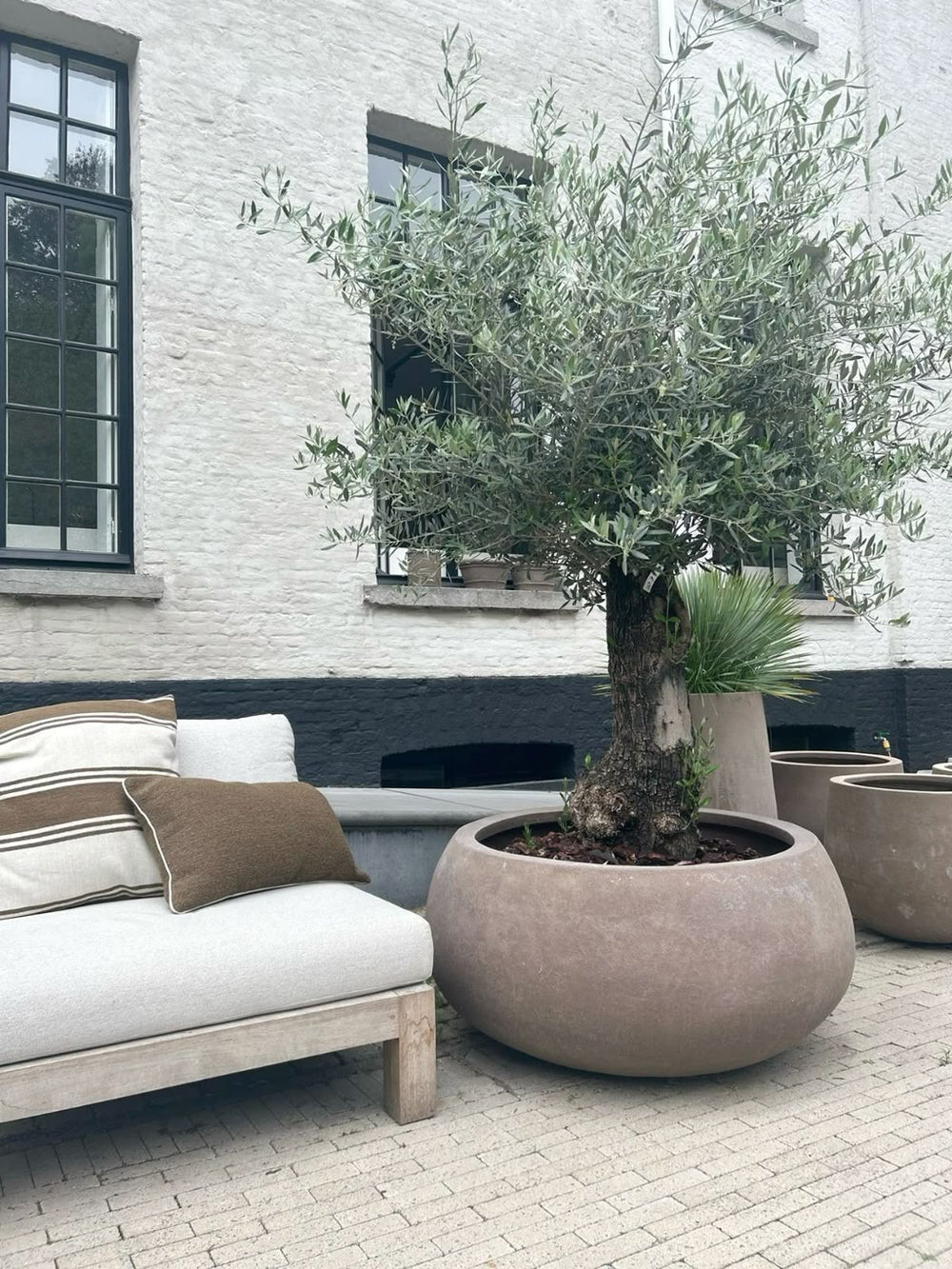 Bring a piece of history and Mediterranean charm to your space with this century-old olive tree. Its rounded canopy and gnarled trunk create a dramatic focal point, perfect for gardens, patios, or large indoor atriums. This living treasure symbolizes longevity, resilience, and elegance.